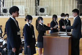 後期生徒会役員と委員会の委員長、学級三役の任命がありました。