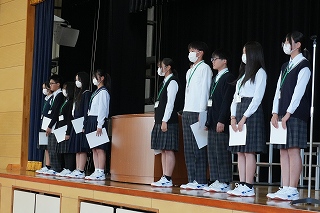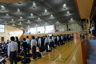 全校生徒の方を向き、激励の拍手を受けました。リーダーとしてがんばってください!