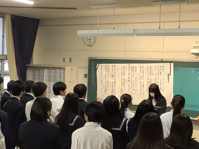 一年生の英語の授業です。今週はALTの先生が授業に加わっています。リスニングの力を伸ばすため、質問を出して解答する活動を取り入れています。