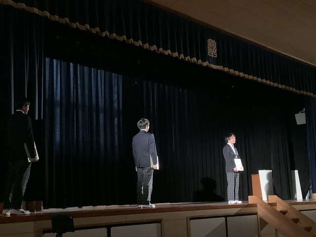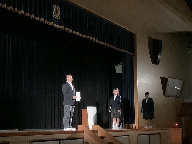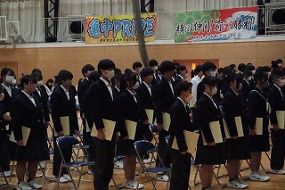 インフルエンザや風邪の流行で欠席の生徒もいるため、学年合唱と欠席した生徒の立志宣言は、後日実施したいと思います。