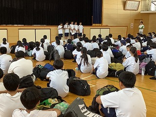 バスから体育館までは少し疲れたような様子の生徒もいましたが、背筋を伸ばして話を聞く姿勢に成長が感じられました。