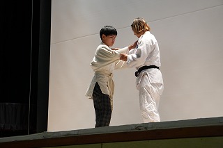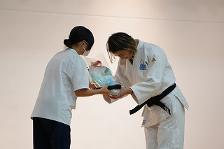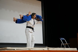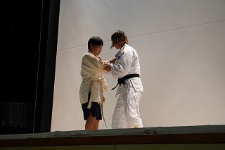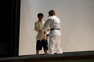 会の後半では、デモンストレーションや、代表生徒・先生との組手で盛り上がりました。