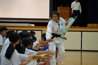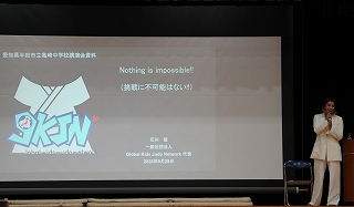 「亀崎でどうする~新説!神君伊賀越え」の読み聞かせを取り入れ、 岡田さんの現在の活動を紹介しながら、「グローバル人材」についても触れ、 地元を正しく知り、地元を好きになることは、 これから世界や地球規模で活躍するみなさんに必要な土台であることを教えていただきました。